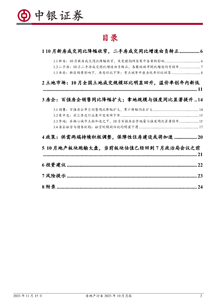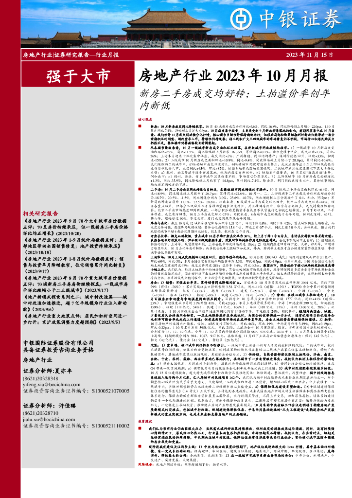中银证券:房地产行业2023年10月月报:新房二手房成交均好转;土拍溢价率创年内新低.pdf
