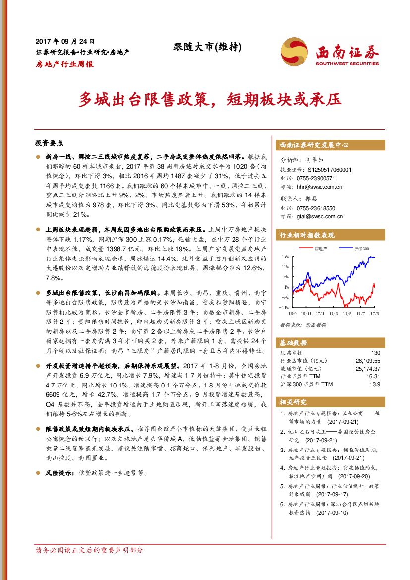西南证券:房地产行业周报:多城出台限售政策,短期板块或承压.pdf