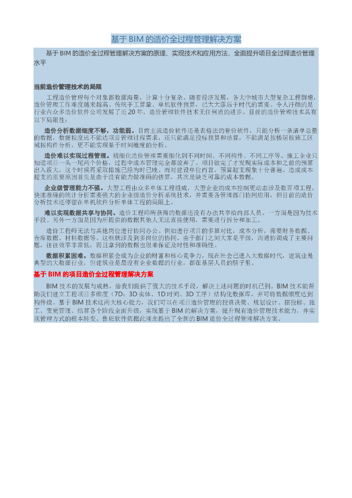 基于BIM的造价全过程管理解决方案讲义(内容丰富).doc