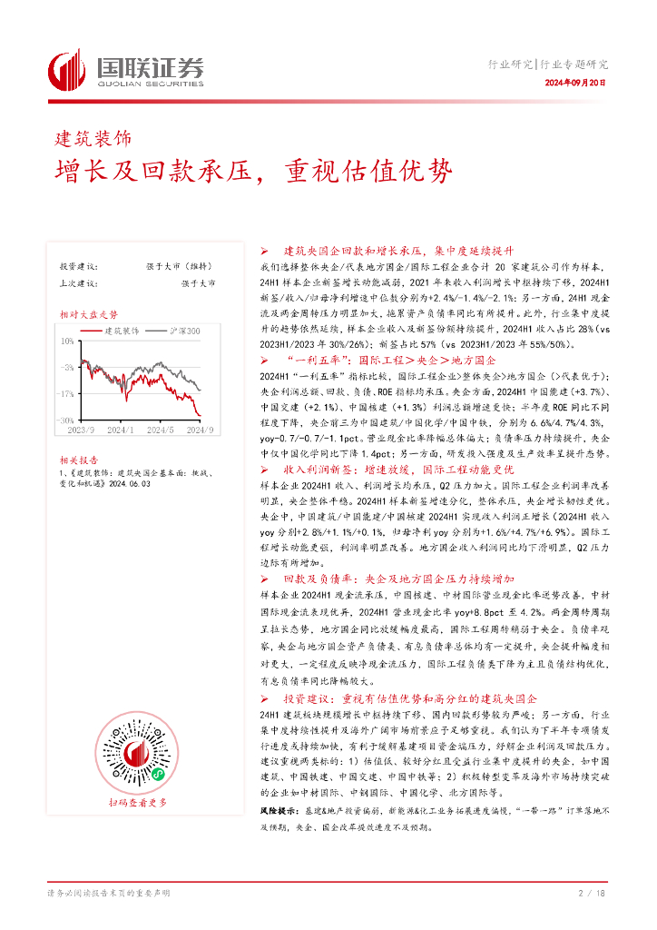 国联证券:建筑装饰行业专题研究:增长及回款承压,重视估值优势.pdf