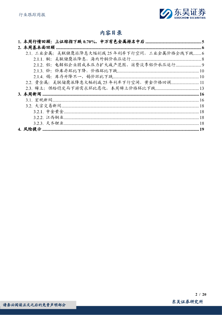 东吴证券:有色金属行业跟踪周报:美联储鹰派降息大幅削减25年利率下行空间,有色金属价格震荡弱势运行.pdf
