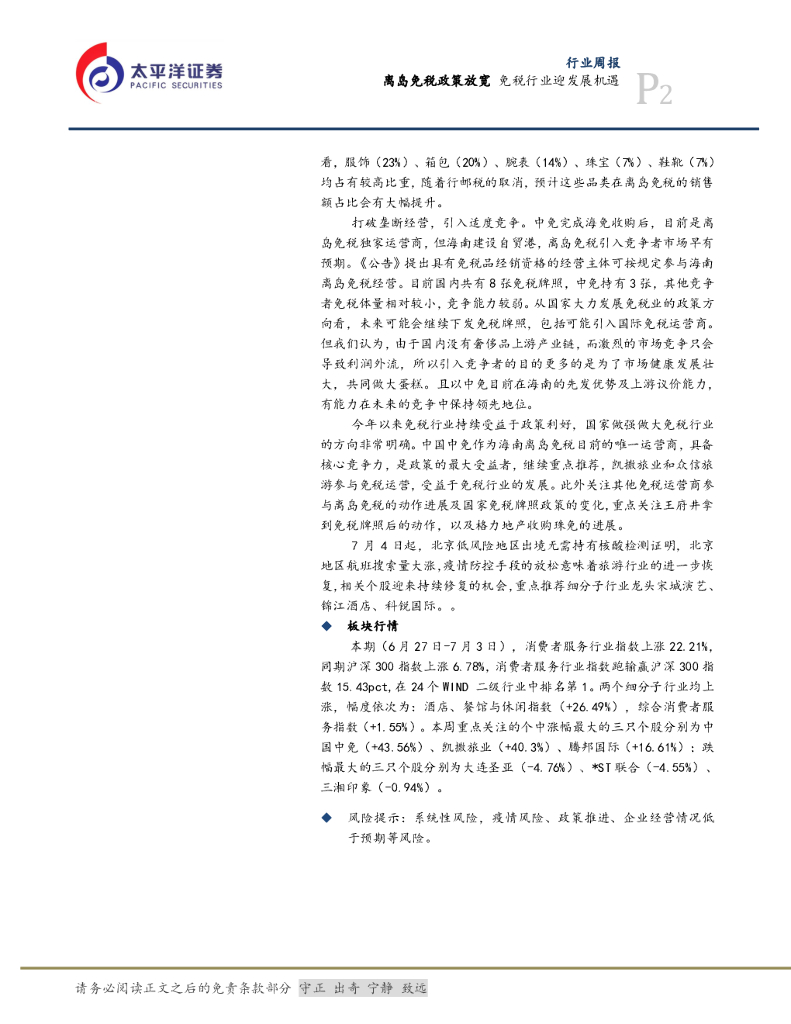 太平洋证券:消费行业周报:离岛免税政策放宽 免税行业迎发展机遇.pdf