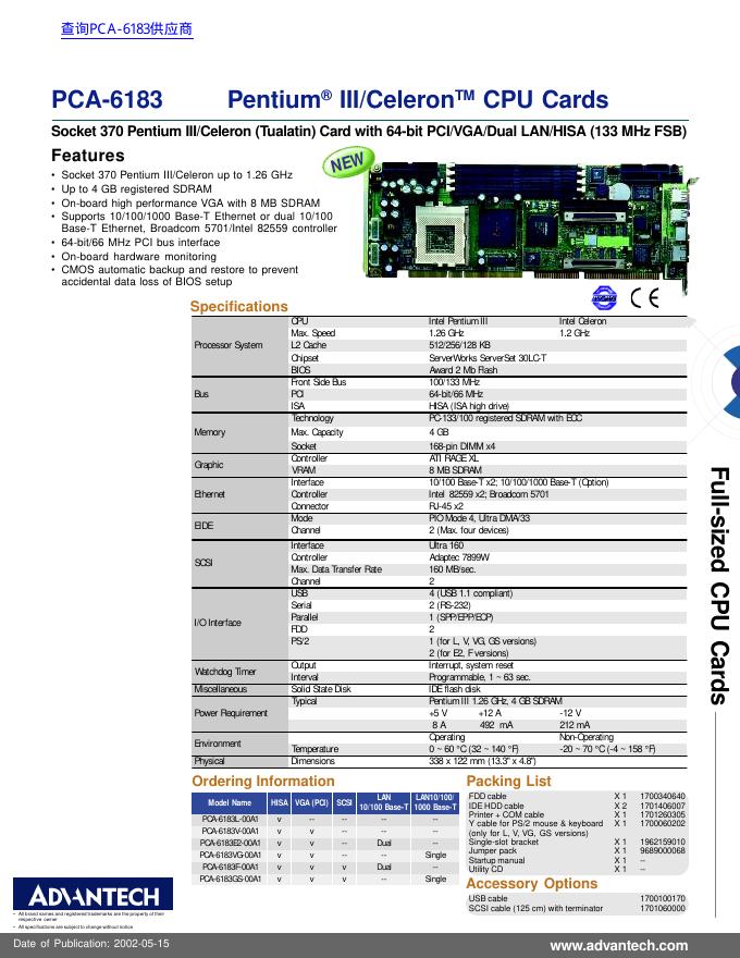 PCA-6183 Pentium III/Celeron CPU Cards 数据手册.pdf