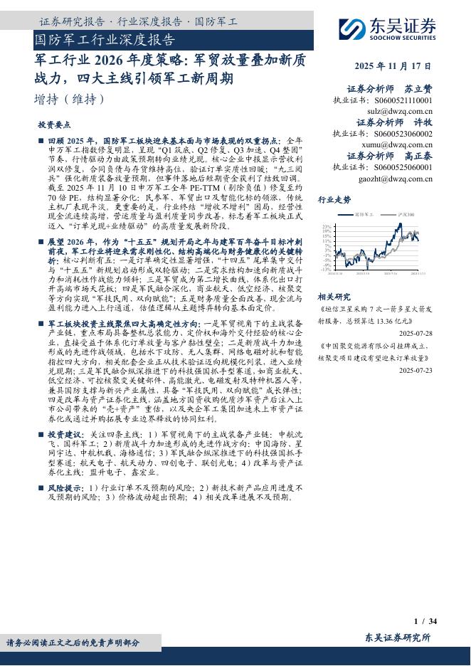 东吴证券:国防军工行业深度报告:军工行业2026年度策略:军贸放量叠加新质战力,四大主线引领军工新周期.pdf