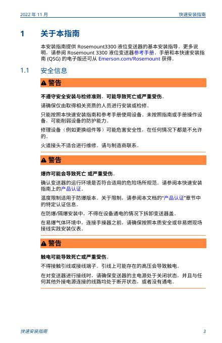 罗斯蒙特 3300 液位变送器 快速安装指南.pdf