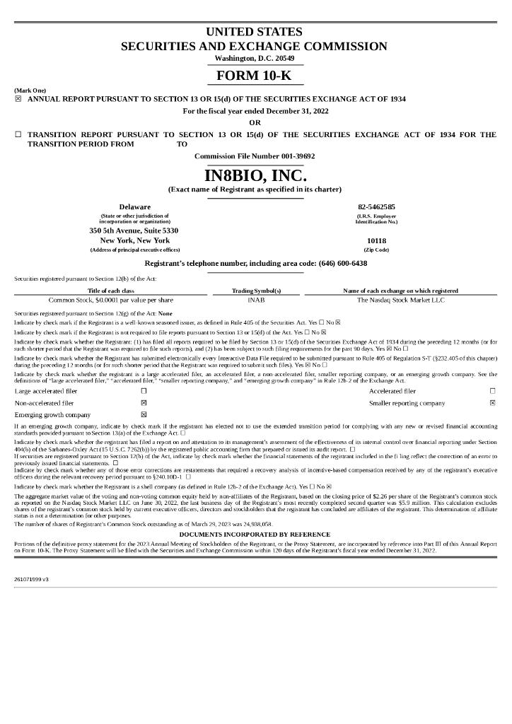 IN8bio, Inc.(INAB)2022财年年度报告(英文版).pdf