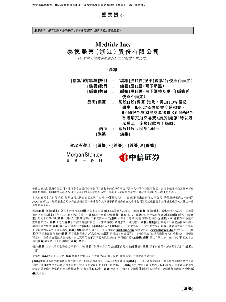 Medtide泰德医药(浙江)股份有限公司港交所IPO上市招股说明书.pdf