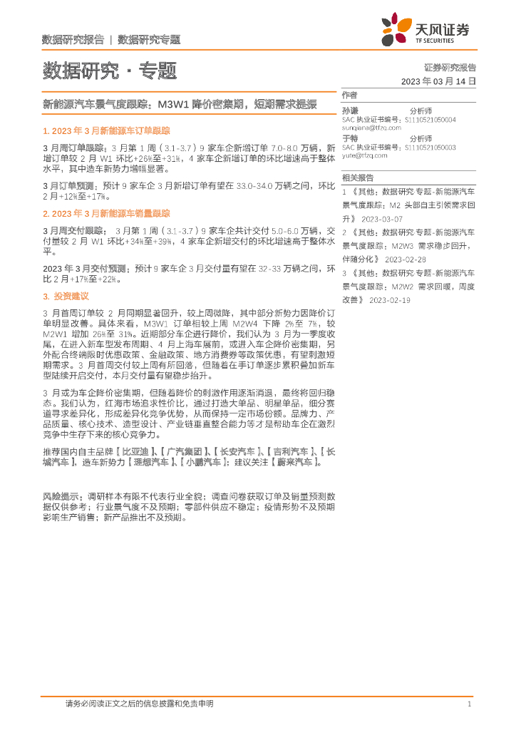 天风证券:新能源汽车景气度跟踪:M3W1降价密集期,短期需求提振.pdf