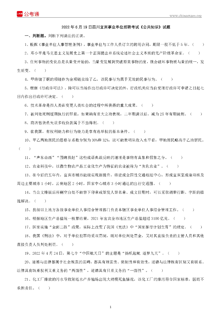 2022年6月19日四川宜宾事业单位招聘考试《公共知识》试题.pdf
