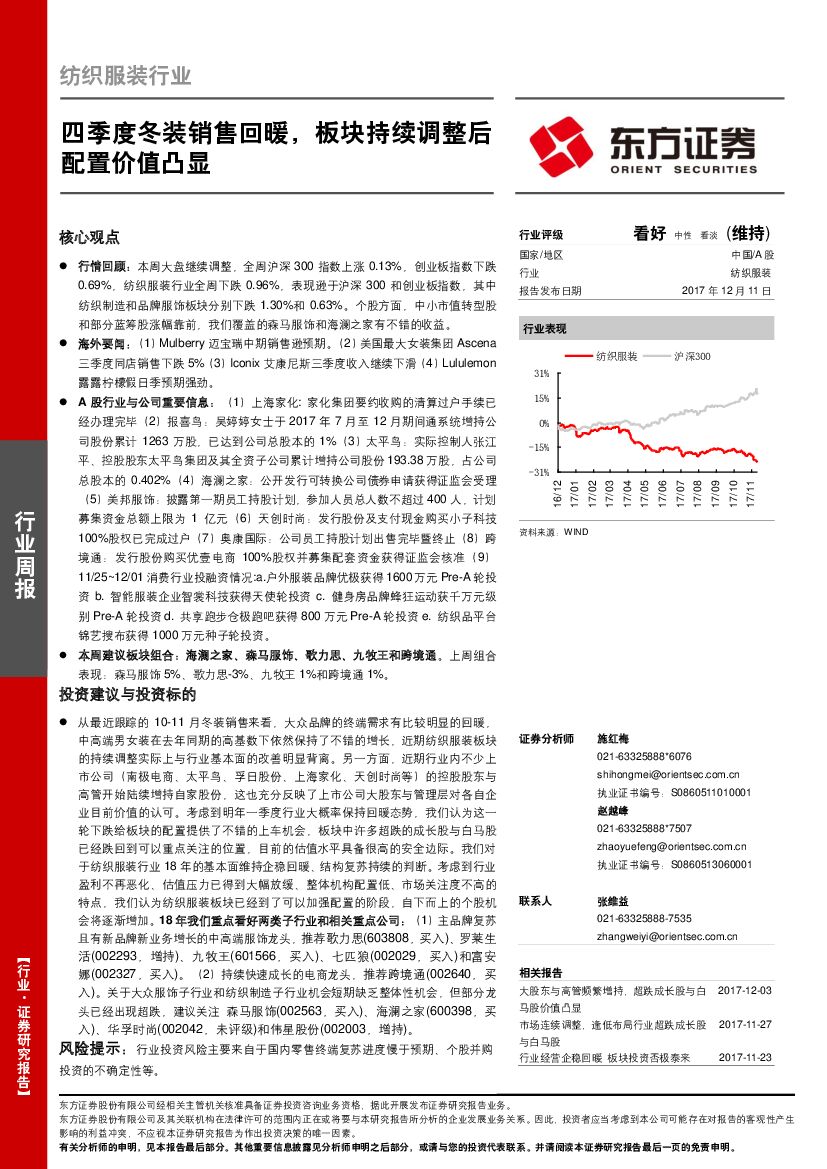 东方证券:纺织服装行业周报:四季度冬装销售回暖,板块持续调整后配置价值凸显.pdf