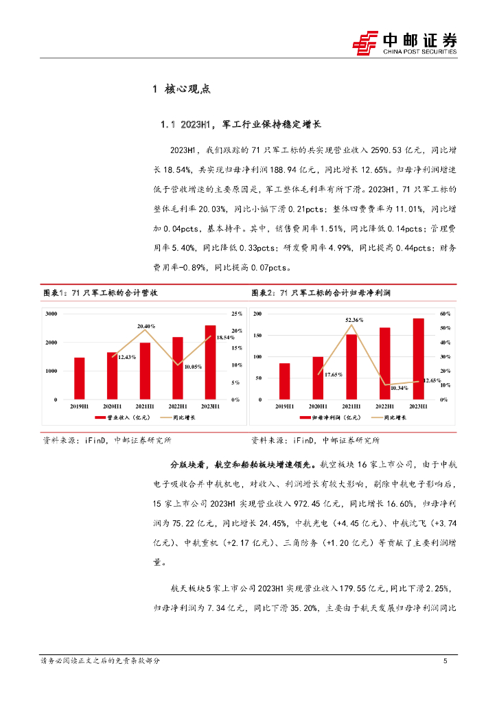 中邮证券:国防军工深度报告:2023H1军工行业保持稳定增长,建议关注两条投资主线.pdf
