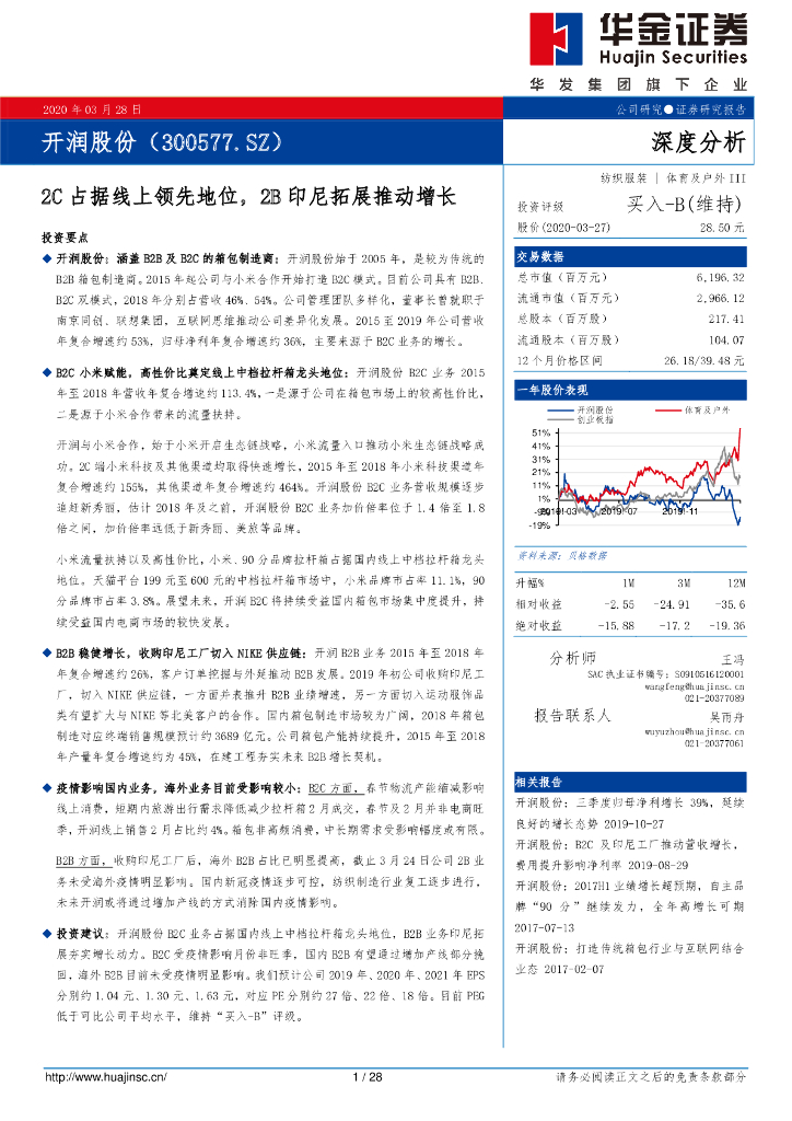 华金证券:开润股份(300577)-2C占据线上领先地位,2B印尼拓展推动增长.pdf