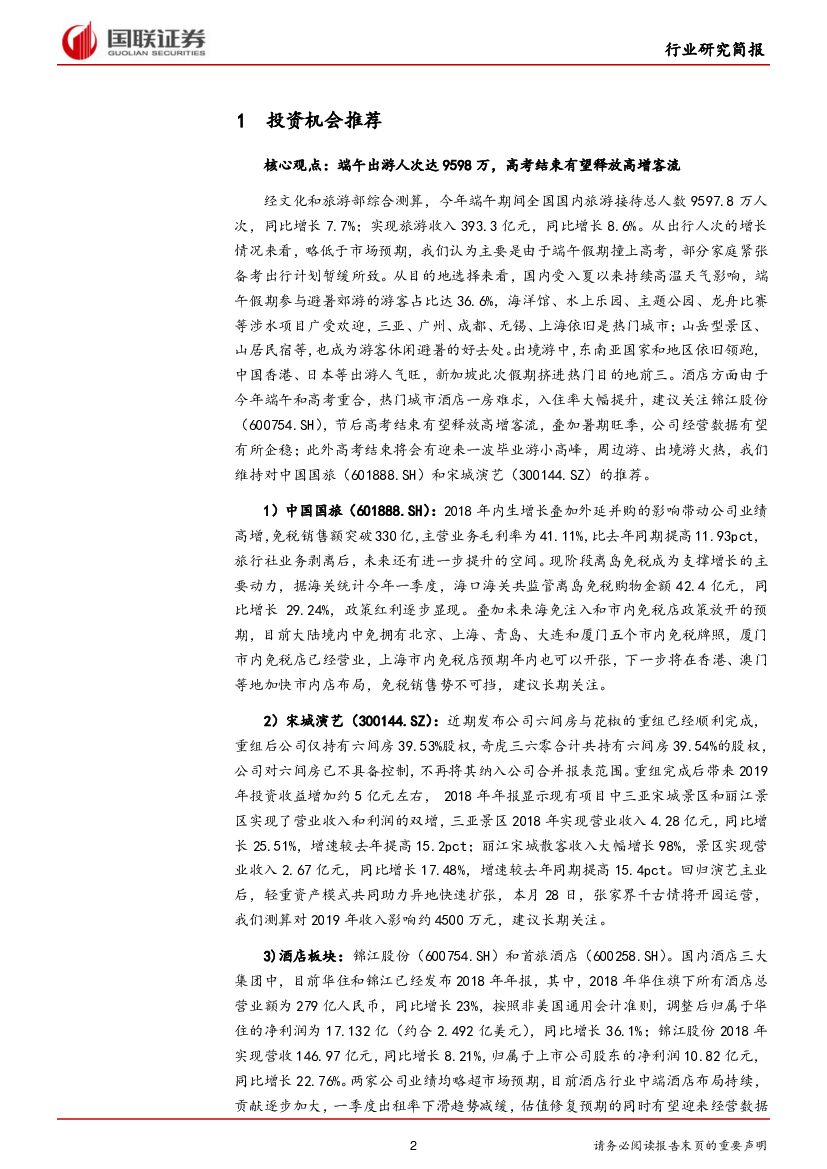 国联证券:休闲服务行业2019年周报第20期:端午出游人次达9598万,高考结束有望释放高增客流.pdf