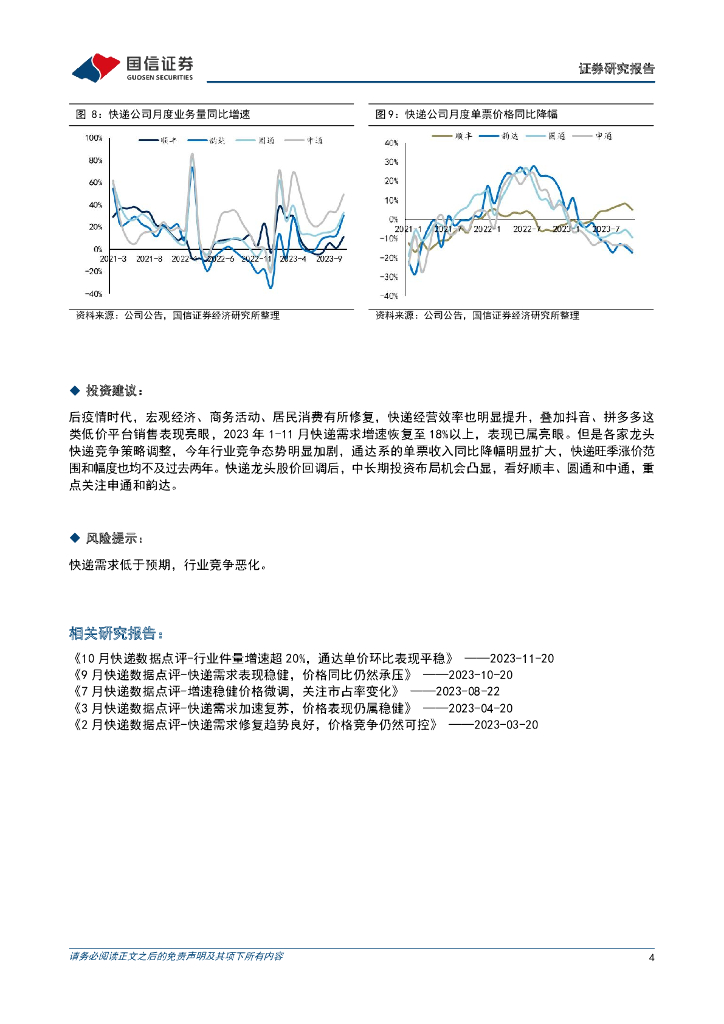 国信证券:11月快递数据点评:行业件量同比增长32%,价格表现仍然承压.pdf