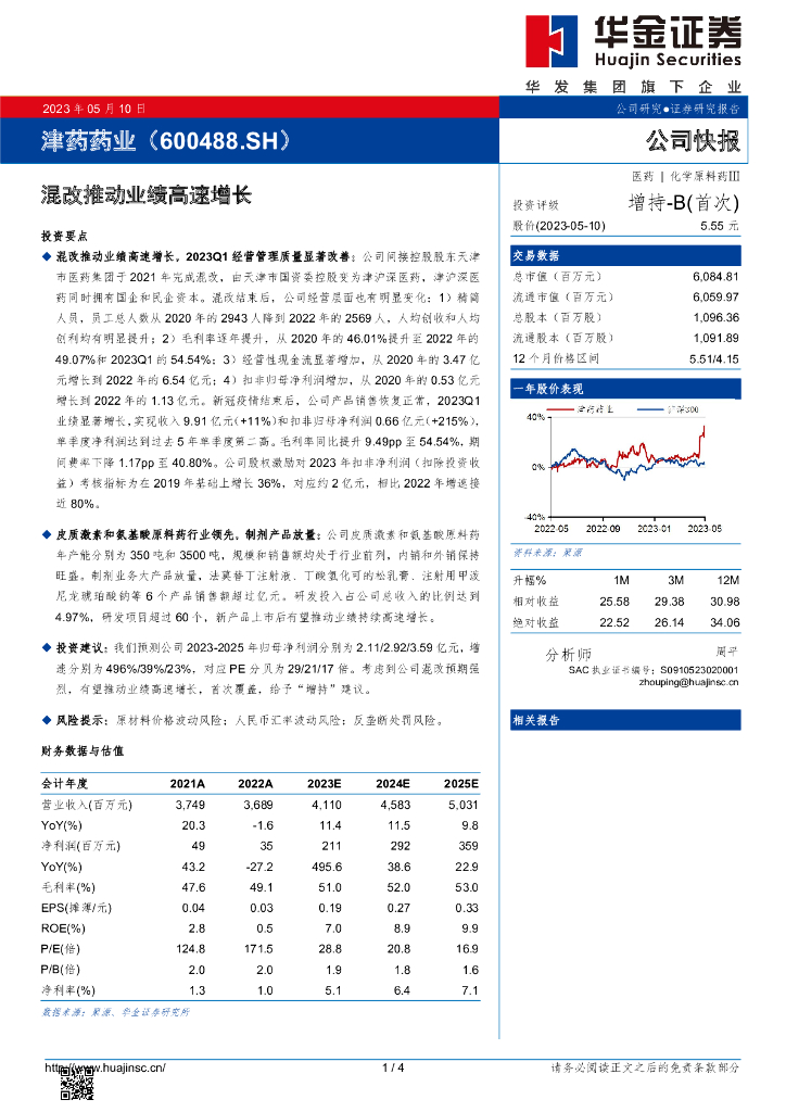华金证券:津药药业(600488)-混改推动业绩高速增长.pdf
