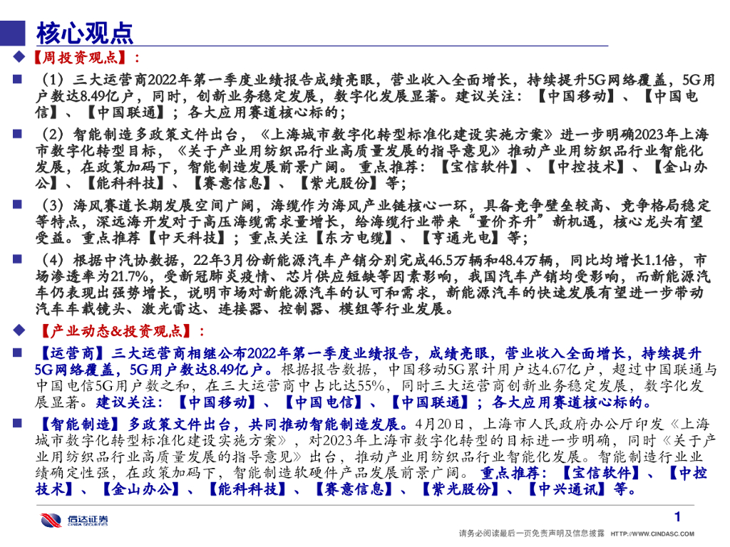 信达证券:信达通信·产业追踪(55):运营商一季度成绩亮眼;政策推动纺织品行业智能制造提速发展.pdf