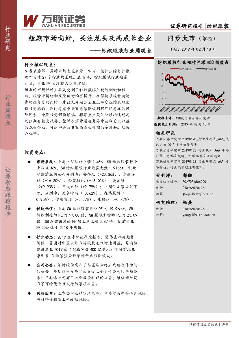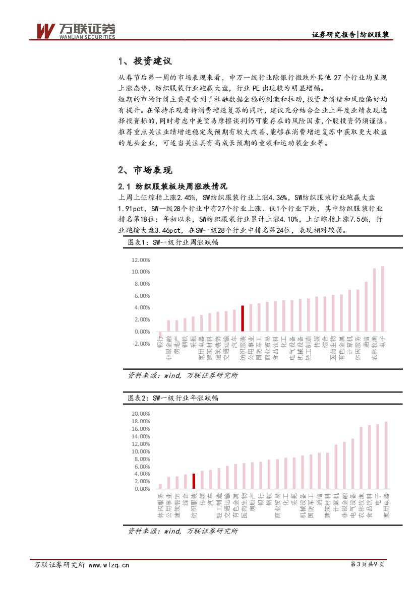 万联证券:纺织服装行业周观点:短期市场向好,关注龙头及高成长企业.pdf