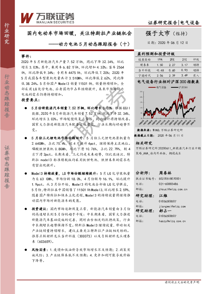 万联证券:动力电池5月动态跟踪报告(十):国内电动车市场回暖,关注特斯拉产业链机会.pdf