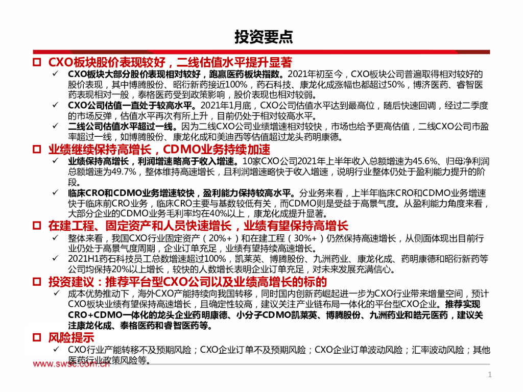 西南证券:医药:CXO板块2021年中报总结:行业景气度不断提升,CDMO持续加速.pdf