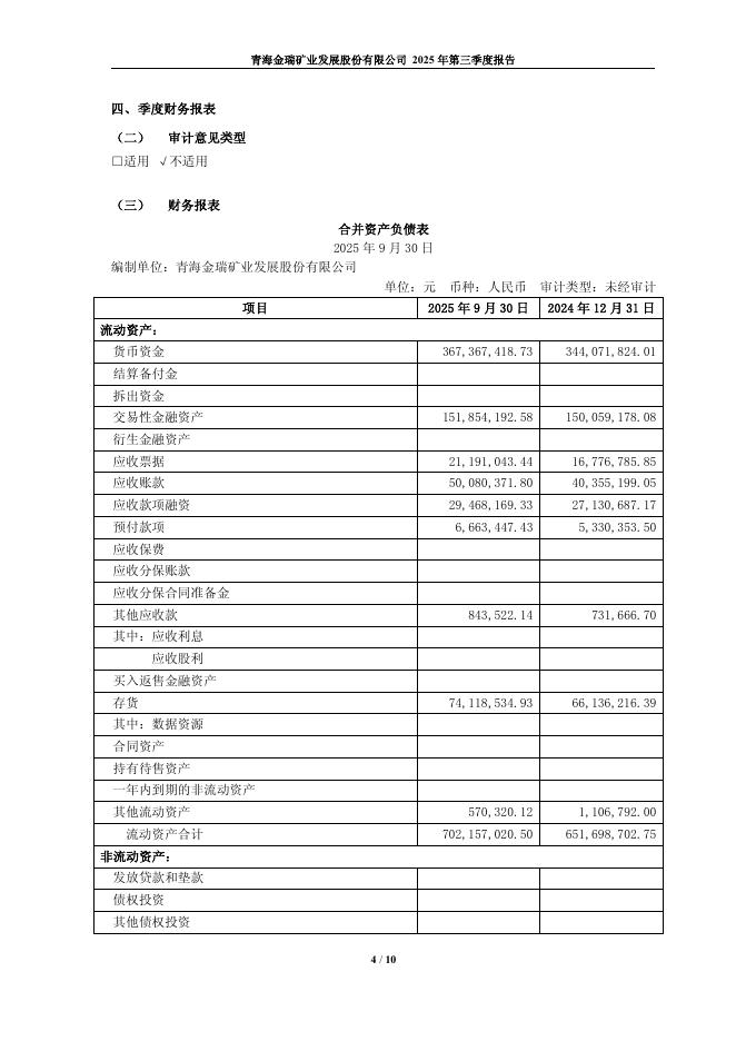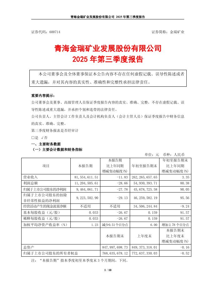 600714-金瑞矿业:青海金瑞矿业发展股份有限公司2025年第三季度报告.pdf