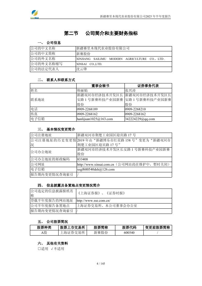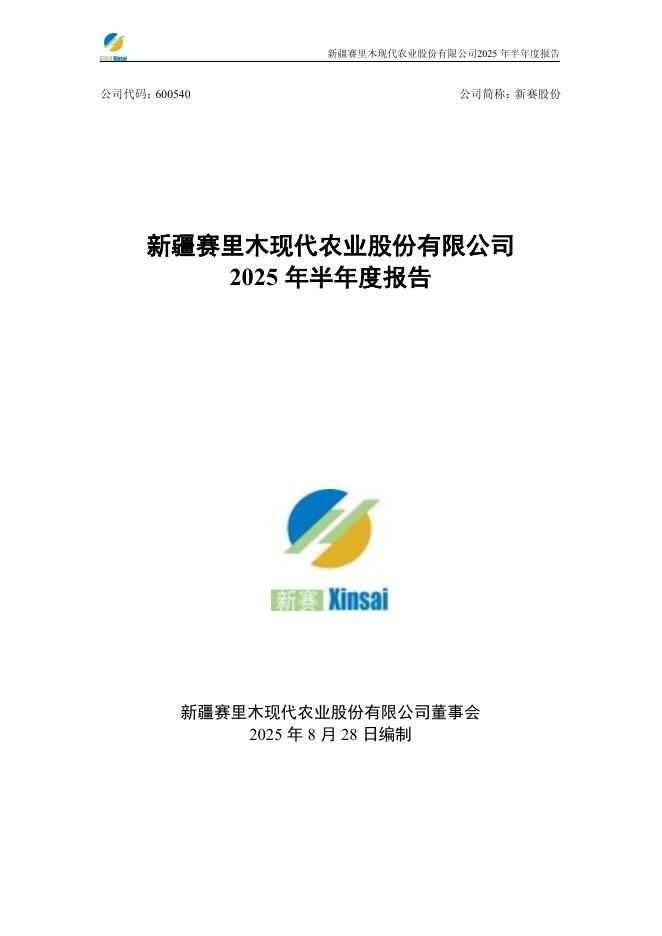 600540-新赛股份:新疆赛里木现代农业股份有限公司2025年半年度报告.pdf