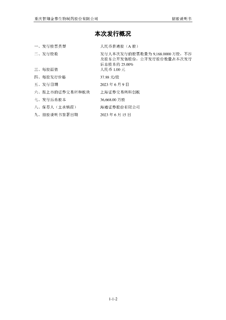 重庆智翔金泰生物制药股份有限公司科创板IPO上市招股说明书.pdf