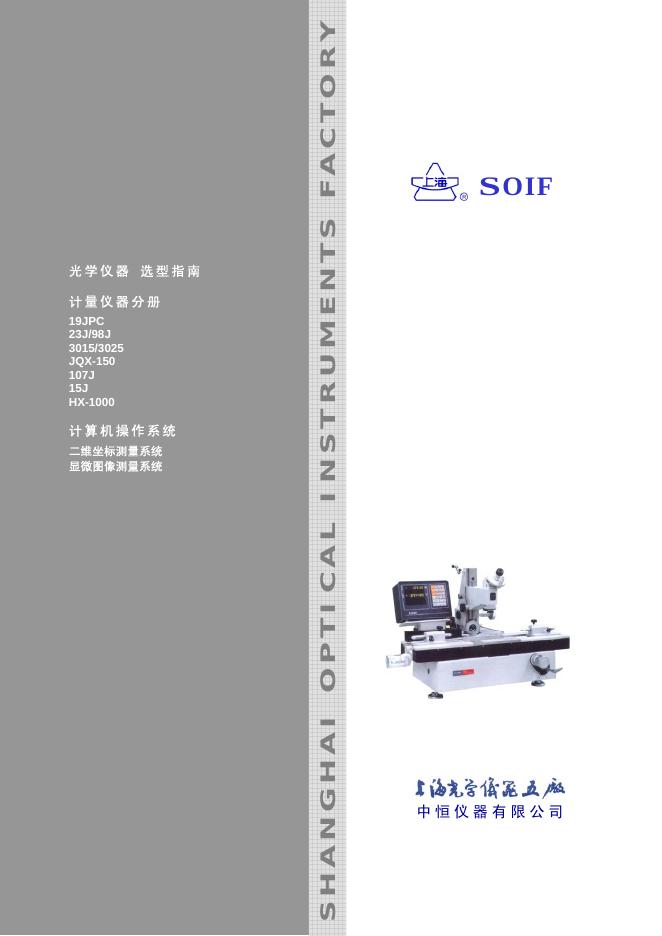 SOIF 计量仪器分册 19JPC 23J/98J 3015/3025 JQX-150 107J 15J HX-1000 计 算 机 操 作 系 统 二维坐标测量系统 显微图像测量系统 光学仪器 选型指南.pdf
