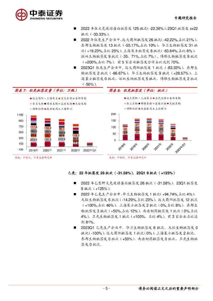 中泰证券:2022+23Q1血制品批签发总结:22年批签发稳健,23Q1静丙强势回暖.pdf