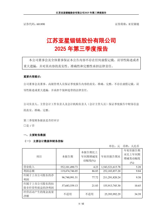 601890-亚星锚链:亚星锚链2025年三季度报告.pdf