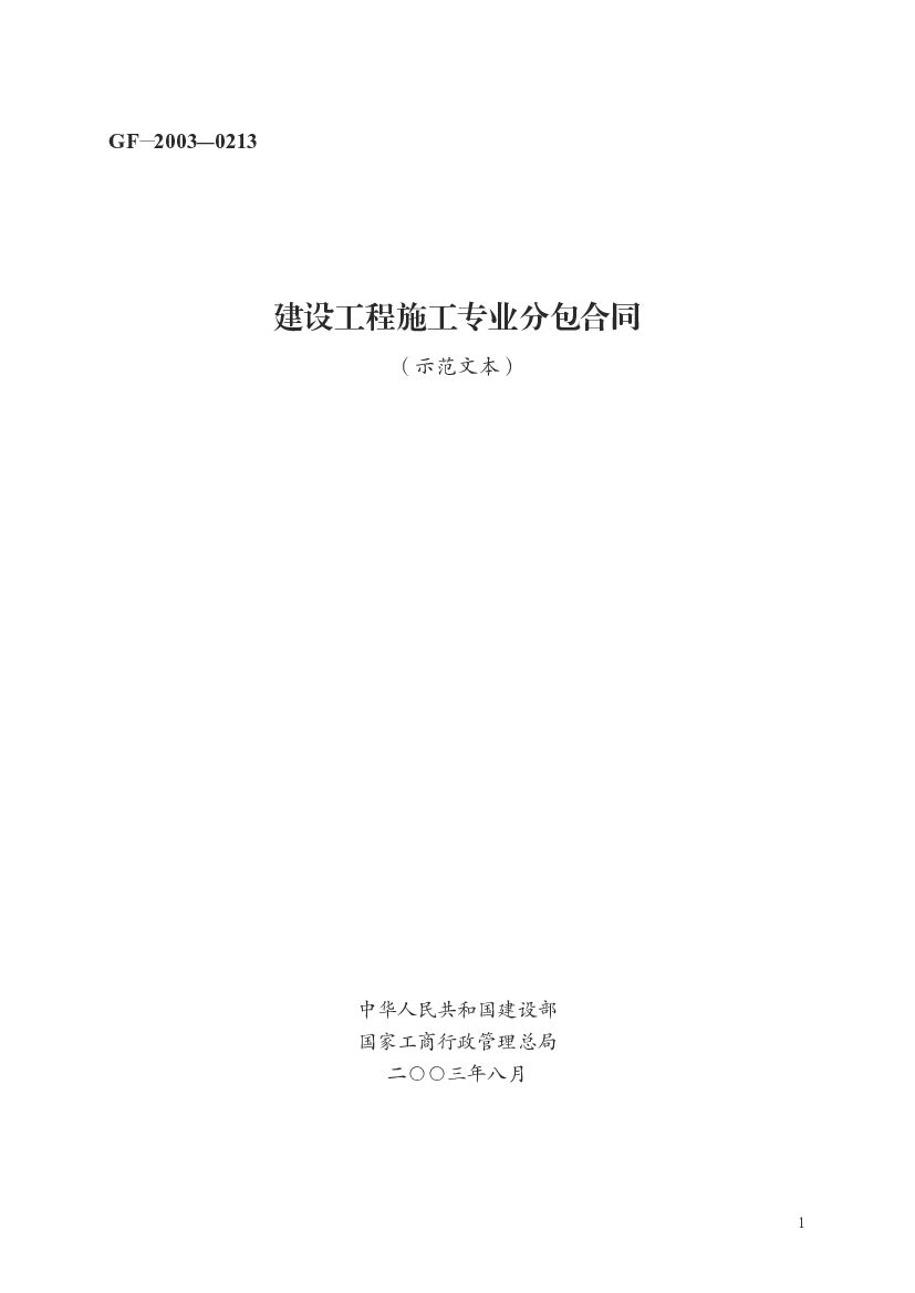 GF-2003-0213 建设工程施工专业分包合同(示范文本).pdf
