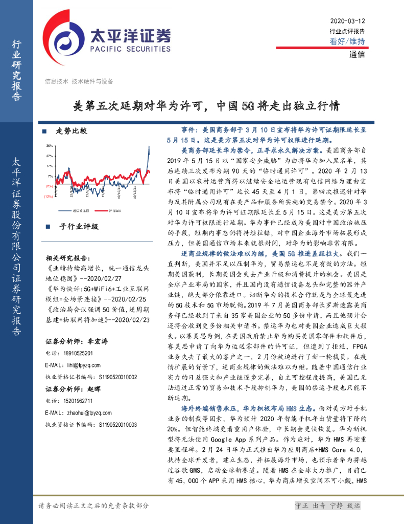 太平洋证券:通信:美第五次延期对华为许可,中国5G将走出独立行情.pdf