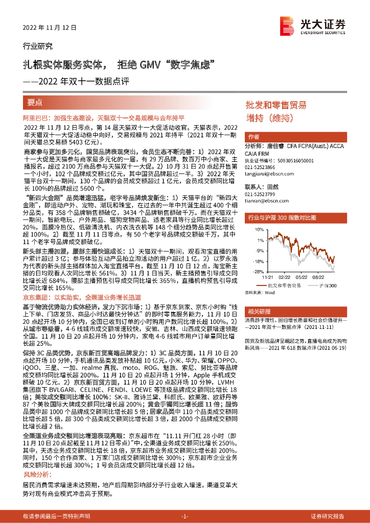 光大证券:批发和零售贸易2022年双十一数据点评:扎根实体服务实体,拒绝GMV“数字焦虑”.pdf