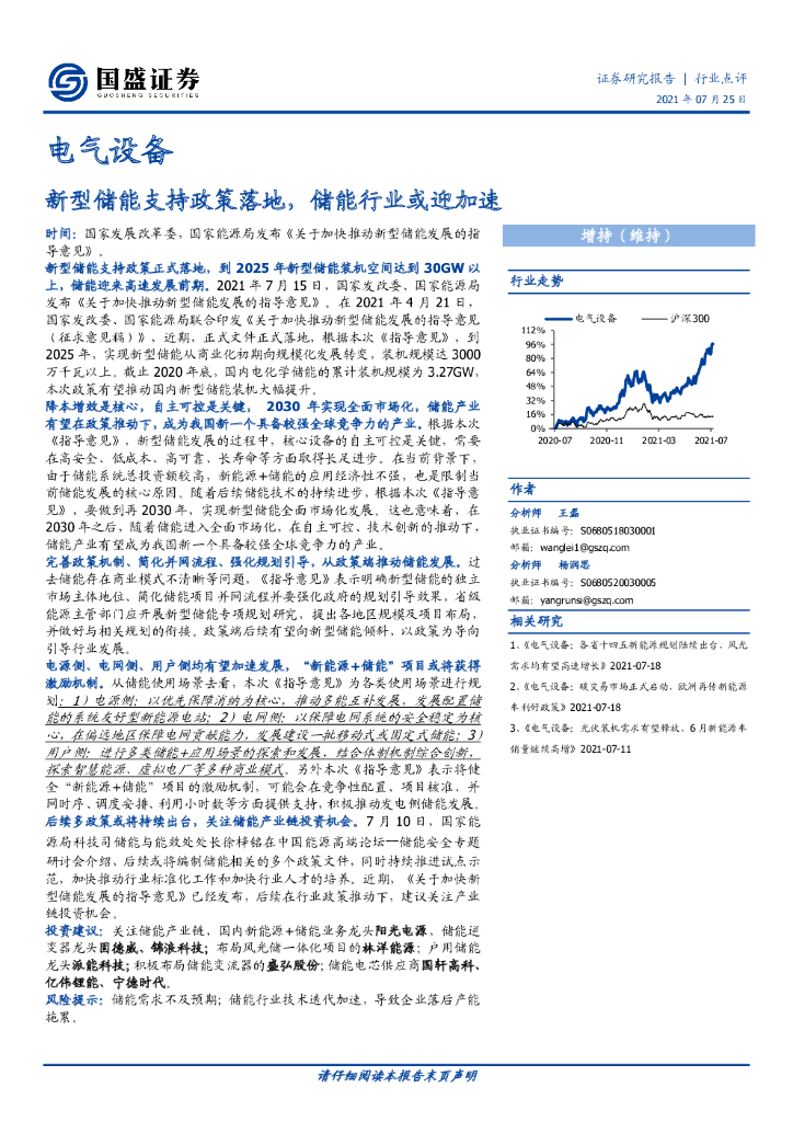 国盛证券:电气设备行业点评:新型储能支持政策落地,储能行业或迎加速.pdf