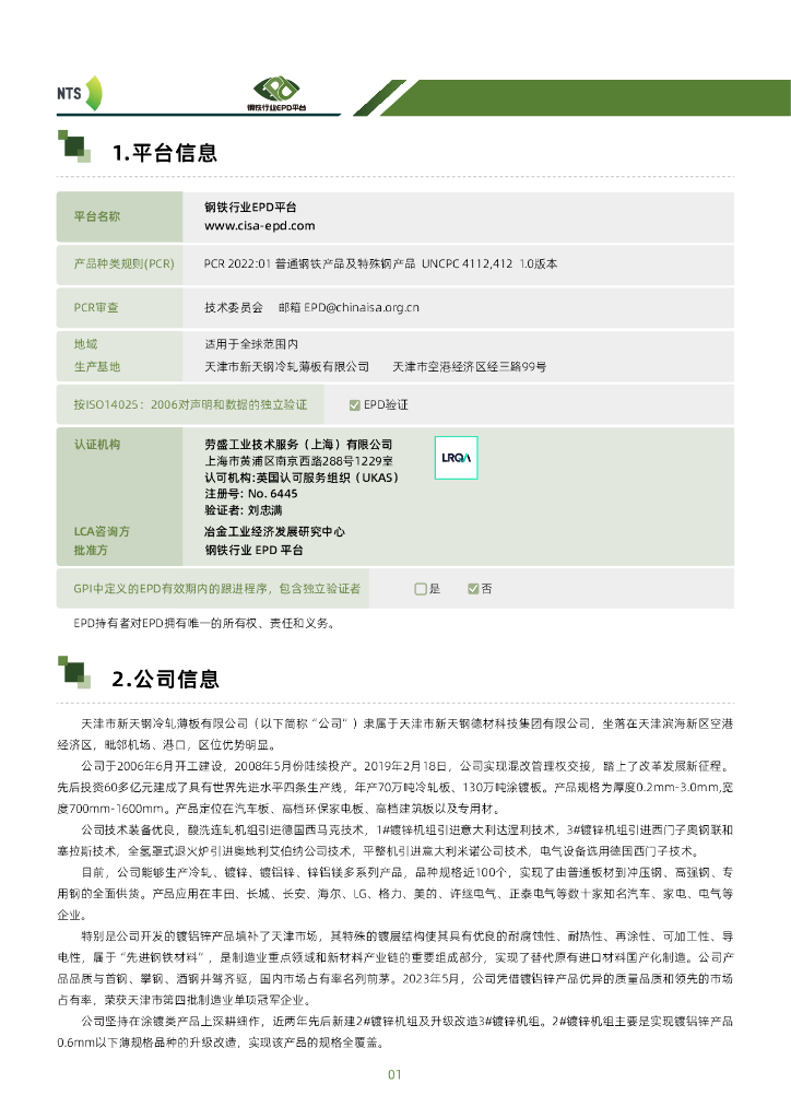 钢铁行业EPD平台:2024天津市新天钢冷轧薄板有限公司环境产品声明-冷轧钢带EPD报告.pdf