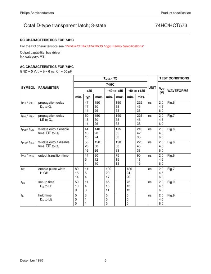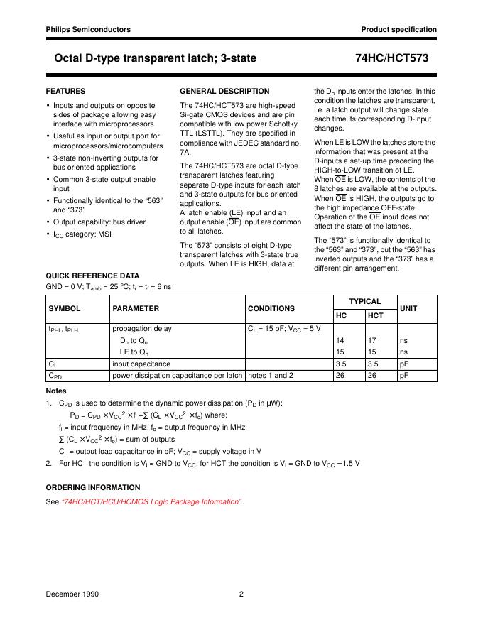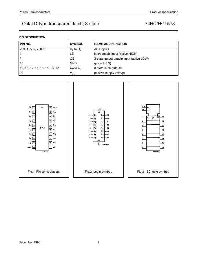 philips 74HC/HCT573 Octal D-type transparent latch 3-state 数据手册.pdf