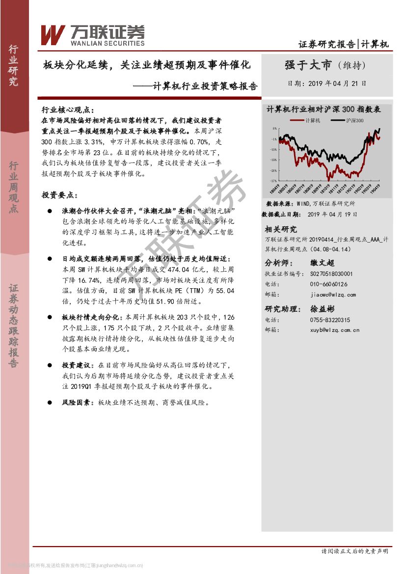 万联证券:计算机行业投资策略报告:板块分化延续,关注业绩超预期及事件催化.pdf