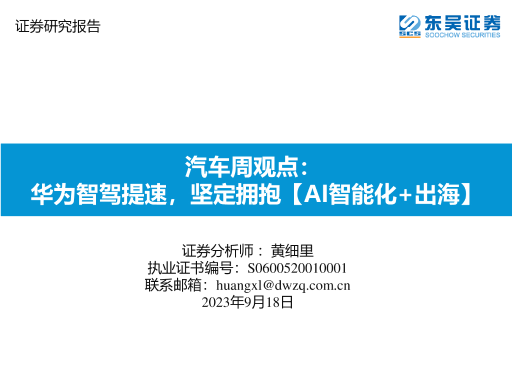 东吴证券:汽车周观点:华为智驾提速,坚定拥抱【AI智能化+出海】.pdf