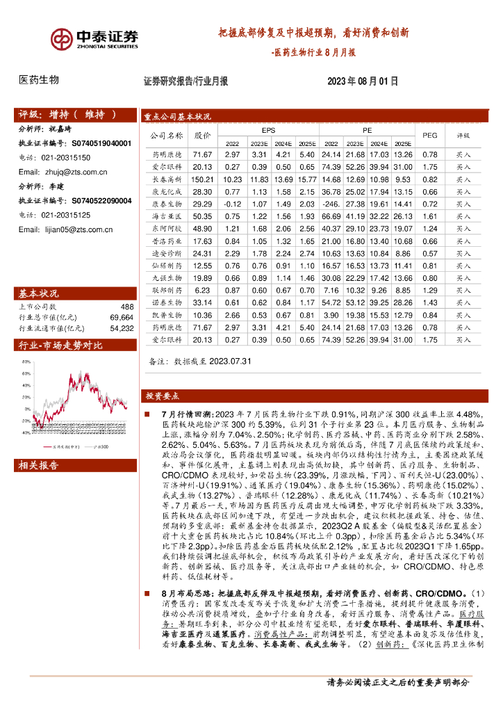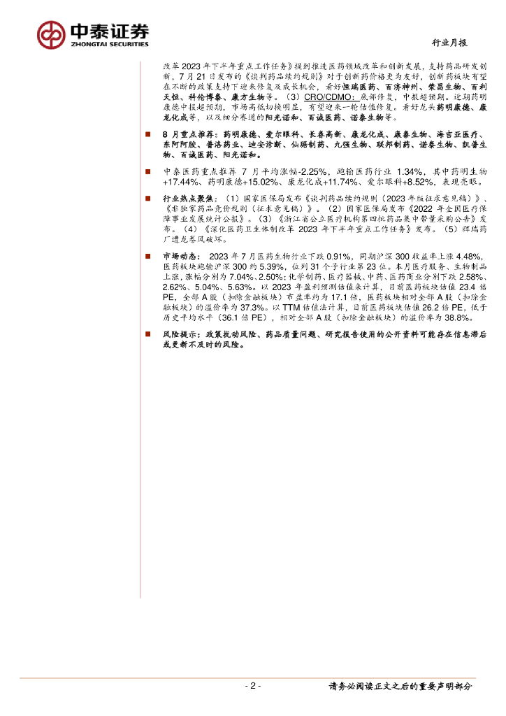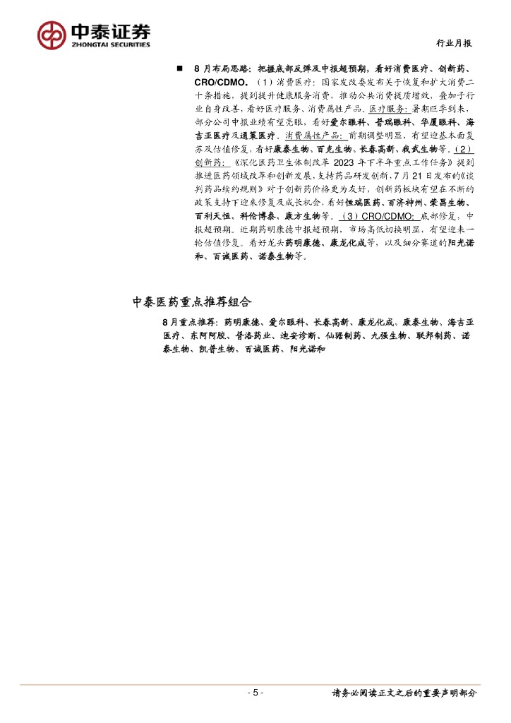 中泰证券:医药生物行业8月月报:把握底部修复及中报超预期,看好消费和创新.pdf