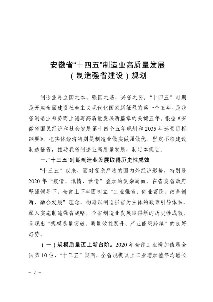 安徽省“十四五”制造业高质量发展(制造强省建设)规划.pdf