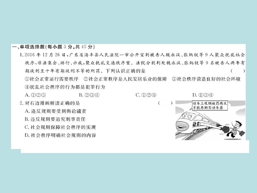 2021部编人教版八年级道德与法治上册习题讲评课件:第二单元检测卷.ppt