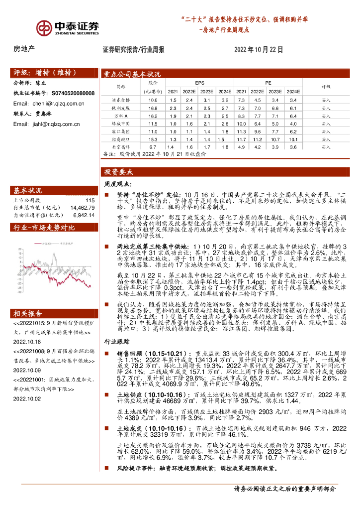 中泰证券:房地产行业周观点:“二十大”报告坚持房住不炒定位、强调租购并举.pdf