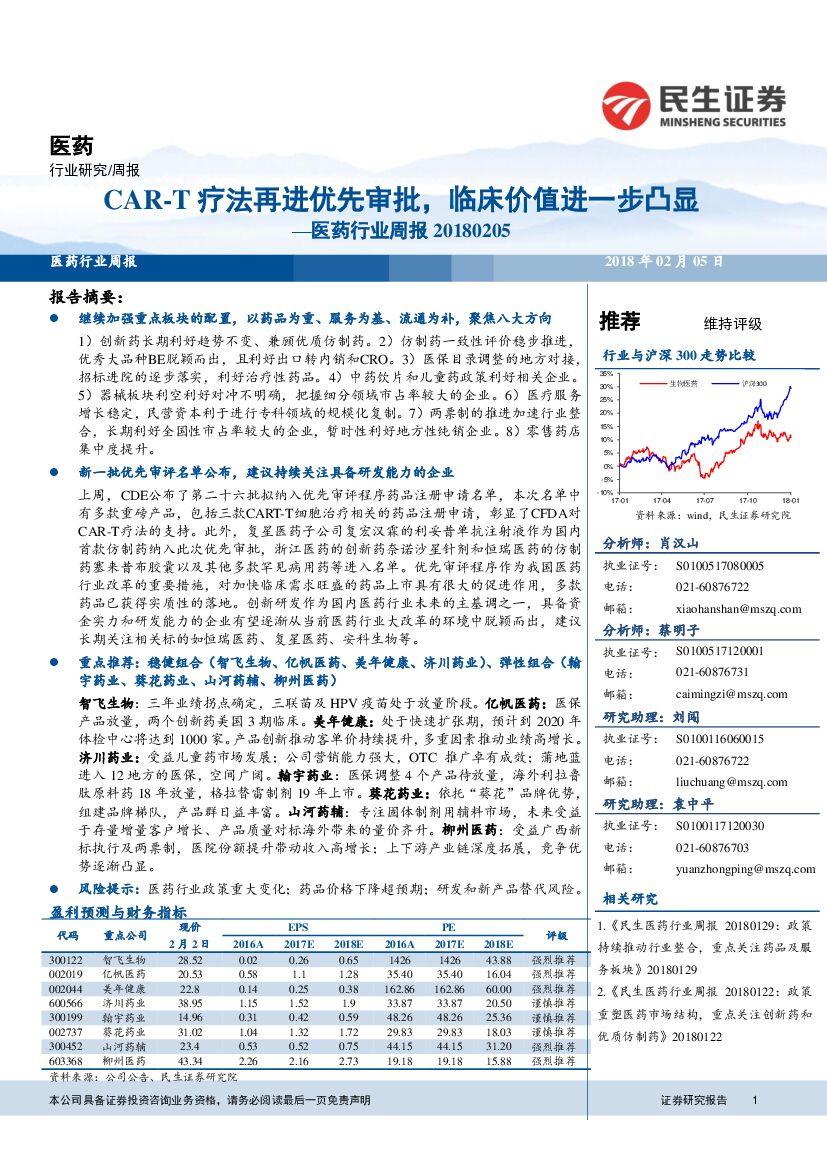 民生证券:医药行业周报:CAR-T疗法再进优先审批,临床价值进一步凸显.pdf