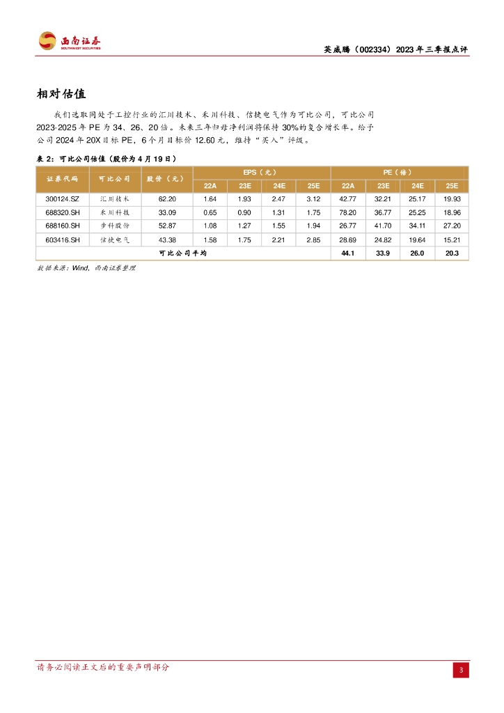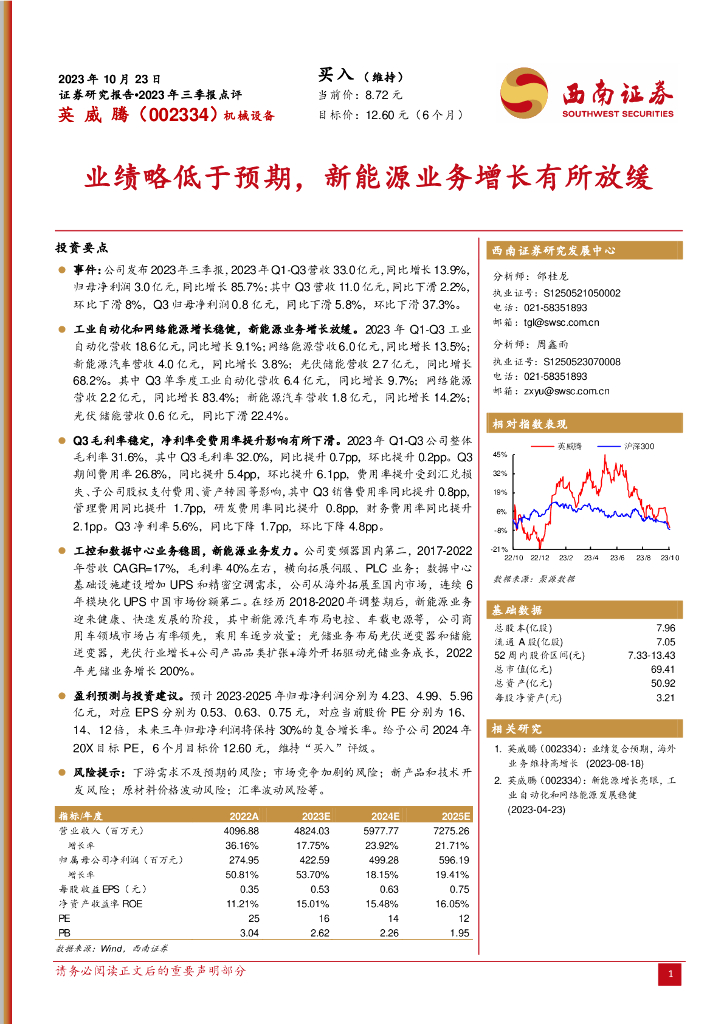 西南证券:英威腾(002334)-业绩略低于预期,新能源业务增长有所放缓.pdf