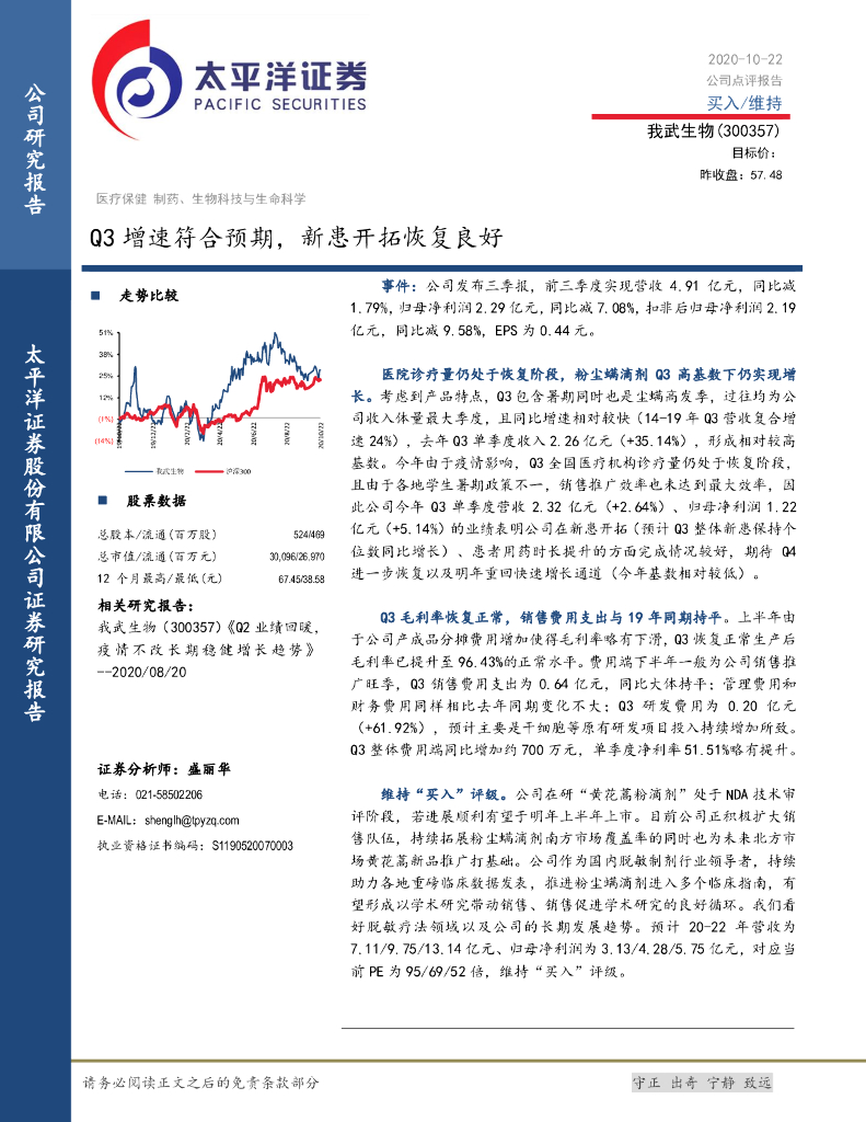 太平洋证券:我武生物(300357)-Q3增速符合预期,新患开拓恢复良好.pdf