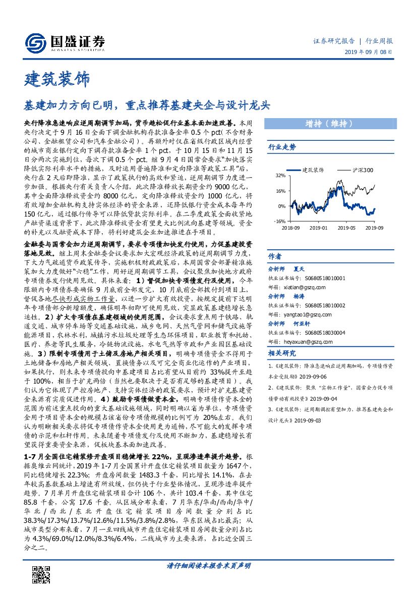 国盛证券:建筑装饰行业周报:基建加力方向已明,重点推荐基建央企与设计龙头.pdf