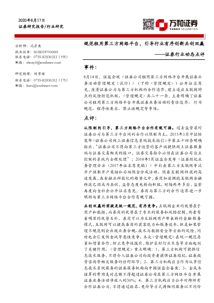 万和证券:证券行业动态点评:规范租用第三方网络平台,引导行业有序创新共创双赢.pdf