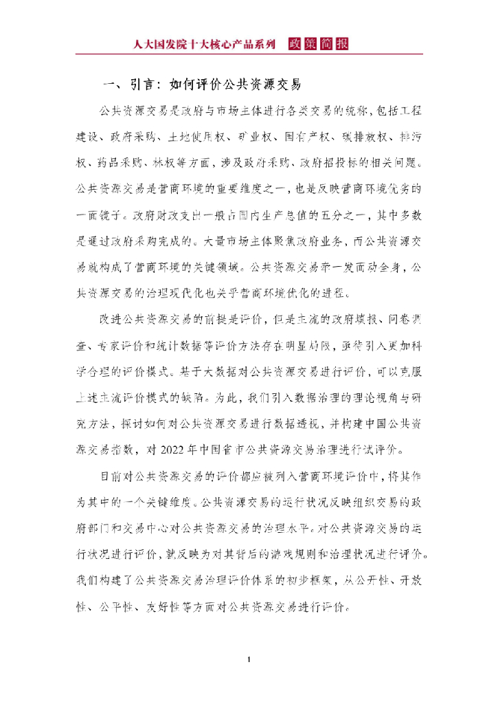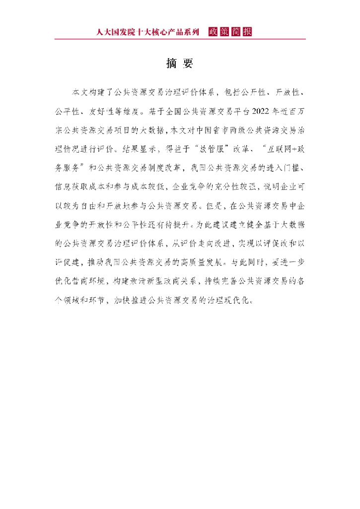 人大国发院:国发院政策简报第一百四十二期:中国公共资源交易(2022):治理评价与绩效改进.pdf