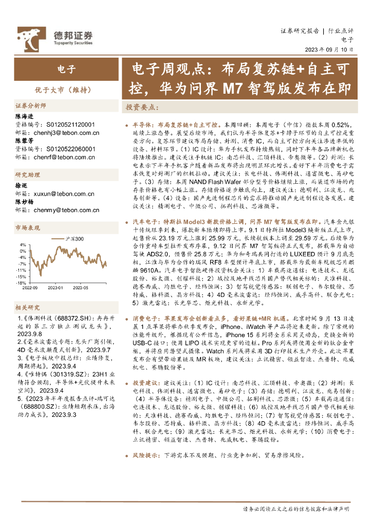 德邦证券:电子周观点:布局复苏链+自主可控,华为问界M7智驾版发布在即.pdf
