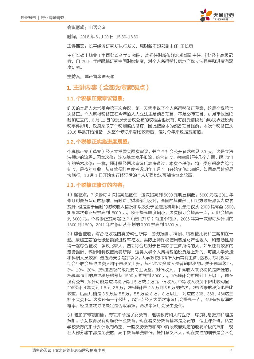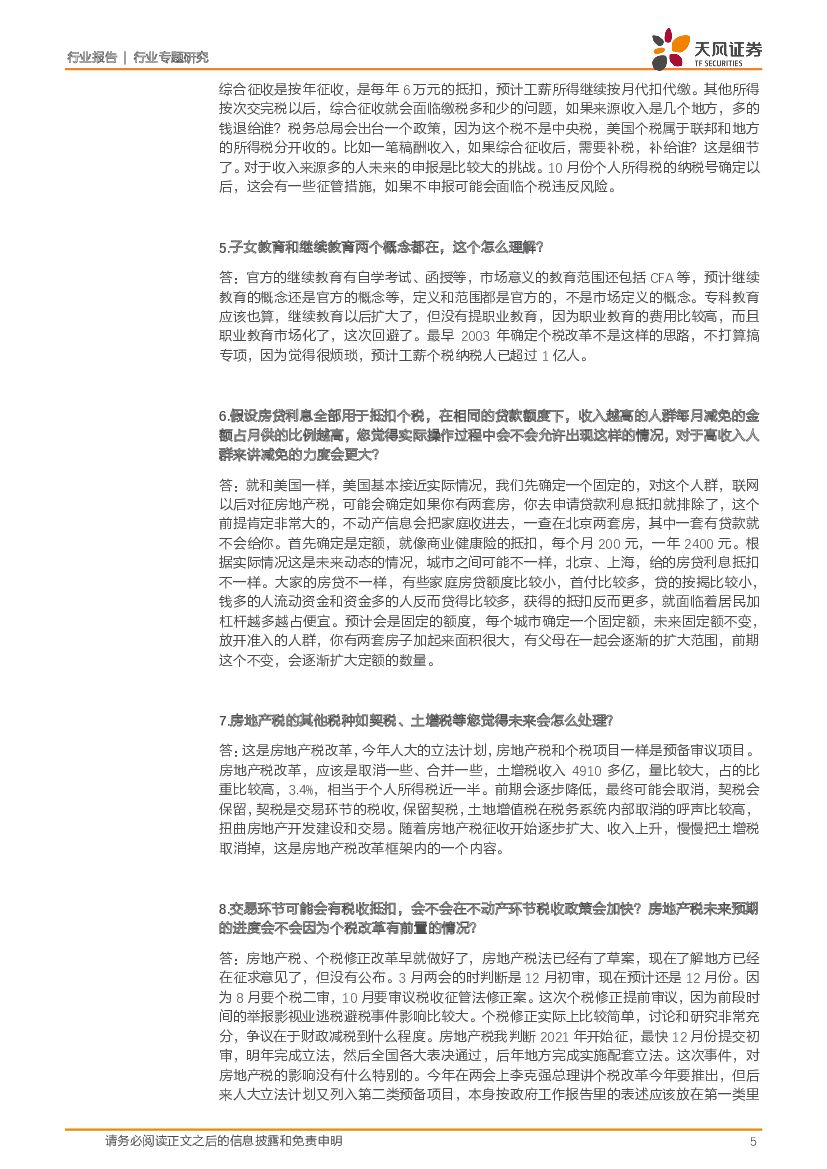 天风证券:房地产行业专题研究:个税改革及房地产税制建设专家解读会议纪要.pdf