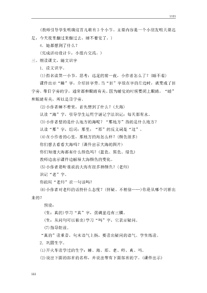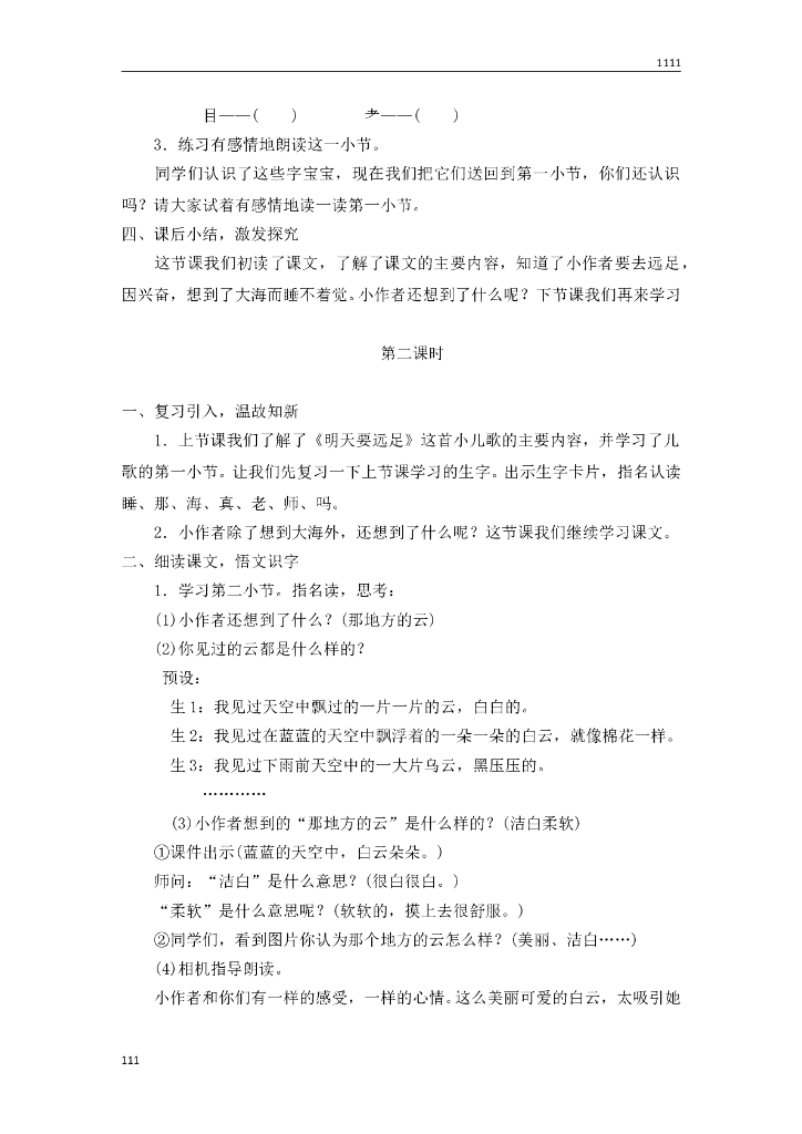 一年级语文(教案2)9 明天要远足教学设计.doc
